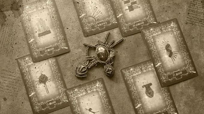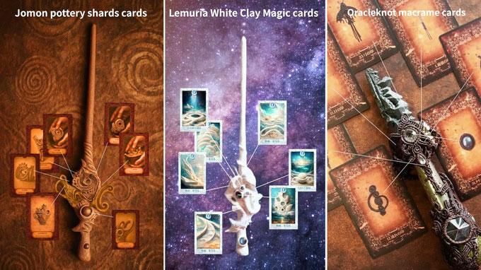 粘土の造形にインスピレーションを与えるカード。引いたカードは、杖の造形や色彩の指針となり、象徴的なデザインを導きます。(現在は日本語版のみ)